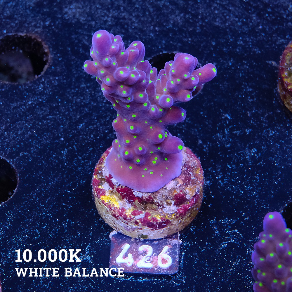 Die Farbausprägung hängt stark von der Beleuchtung und den Nährstoffwerten ab. Unter Blaulicht (US-Style) wirken die Polypen besonders intensiv fluoreszierend, während unter Tageslicht die Gewebefärbung stärker zur Geltung kommt.